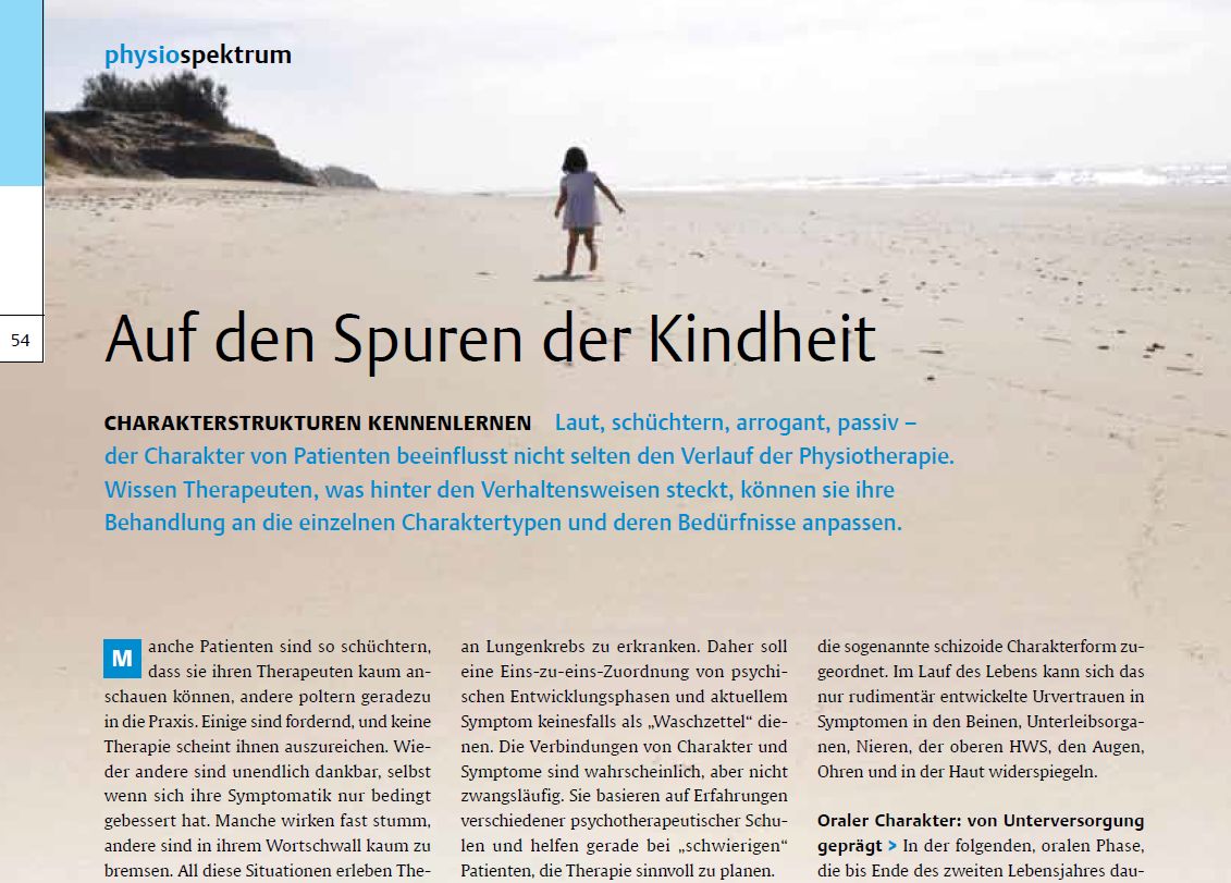Bernhard Voss schreibt in dem Fachmagazin physiopraxis über ganz praktische Grundlagen und die Begegnung mit den Charakterstrukturen aus der Seminarreihe Körperspuren - KSP2 Charaktere und Persönlichkeiten: